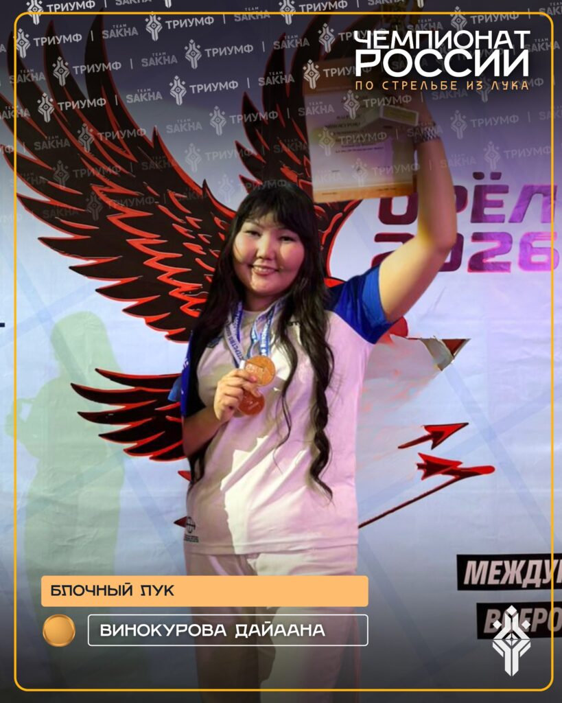 Представительница сборной Республики Саха (Якутия) Дайаана Винокурова завоевала бронзовую медаль в дисциплине блочный лук среди женщин на чемпионате России по...